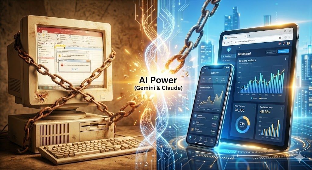 属人化したあなたのレガシーシステム(Access/Excel)を、爆速で、止まらない「会社の資産」へ再構築。もう、高額な見積もりに絶望する必要はありません。